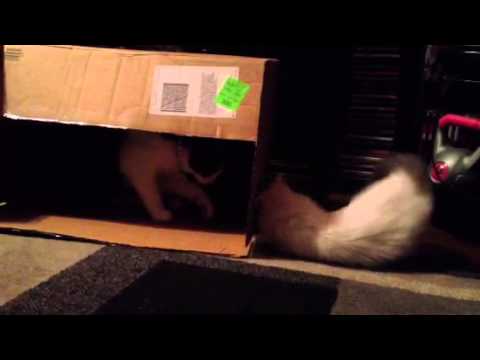 Ragdoll kitten jumps & kicks cat out of house. Funny.