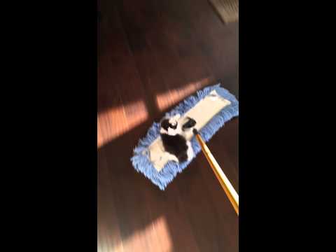 Funny kitten broom riding